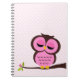 Custom notebook features a beautiful vector illustration of an adorable owl perched on a tree branch.
