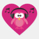 Pink Owl With Headphones & Musical Notes Heart Sticker