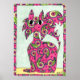 Pink Paisley Cat Folk Art Poster