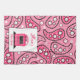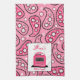 A kitchen towel featuring a pink paisley design. Personalise with your name above pink retro stove.