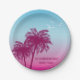 Pink Palm Trees On Blue Tropical Summer Paper Plate