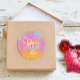 Fun design with pink and yellow "Thank You" and the name of the bride to be underneath. This colourful design with cute pink palm trees art is a great addition to a bachelorette party for gifting favours.