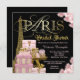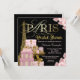 Paris bridal shower invitation with beautiful gold Eiffel Tower, elegant Paris gift packages, gold glitter high heel shoes and fancy gold Paris script on a rich pink and black floral background. This beautiful Paris bridal shower invitation is easily customised for your event by simply adding your details in the font style and colour, and wording of your choice. This is a printed design with no real diamonds, jewels, glitter, etc.