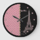 Pink Paris Eiffel Tower Round Wall Clock