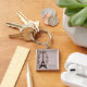 Keep your keys organised with this contemporary keychain design featuring the Eiffel Tower against a grunge swirl and postage stamp background in pink. Customisable text allows you to alter fonts, change text colours and sizes as you wish. Personalise for yourself or makes a great gift.