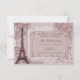 Create a unique invite all your own with a Pink Parisian bridal shower invitation. Invitation design features the Eiffel Tower, a scroll where you can detail the information of your bridal shower adorned with damask and postal stamp embellishments. Additional wedding stationery available with this design as well. Need help with customisation? Please contact me and I will work out the wording and details to fit this design to your satisfaction.