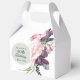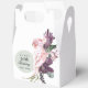 Add a memorable personal touch to a 60th birthday celebration with this custom gabled favour box. The theme is boho tropical floral and is fabulous! A sage green round frame surrounds the text along with a beautiful pink parrot sitting atop a bouquet of tropical floral elements that include purple protea and orchids with dark berries and jungle greenery. It makes a wonderful party theme with a creative and fun vibe. Imagine how delighted the guest of honour will feel with her name printed on her party favours! You can personalise this item with any name and any age birthday. This gable styled favour box is available in 3 sizes.