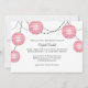 Delicate pink party lanterns set the tone of this pretty baby shower invitation and event. This invitation is shown on the basic paper; however, I recommend the weight and texture of the linen paper.
