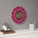 Custom Art Wall Clock : Unique design in ornate hot pink and gold geometric flower with a beautiful Arabic calligraphy in the centre, for daily Muslim blessings at home or office .