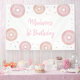 Celebrate your little one’s birthday in the sweetest way! This charming doughnut birthday design features my original hand-painted watercolor artwork with pastel pink frosted doughnuts and colourful sprinkles.