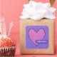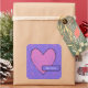 Pink applique heart on lavender patchwork label. Label all your stuff.