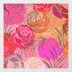 Multilayer floral pattern with coloured flowers and branches on pink background