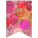 Multilayer floral pattern with coloured flowers and branches on pink background