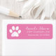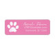 These return address labels feature a cute pink and white paw print on a pink background with customisable text for your name and return address.