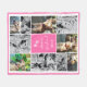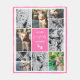 Remember your beloved pet with this photo collage blanket to which you can add ten photos. At the centre, "you left paw prints on our hearts" with two cute paw prints, a heart decorating one, in a simple pink and white design.