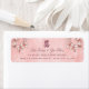 Oriental peach blossom / plum blossom, spring flowers in shades of pink with a double happiness symbol in calligraphy on a soft watercolor background chinese wedding return address label.