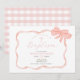 Pink Peach Bow Christening Invitation