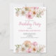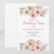 Elegant pink peach floral birthday invitation. Easy to change the text. Pretty summer watercolor botanical design.