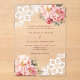 For an elegant and romantic wedding. A transparent background decorated with pink and peach coloured florals, roses and lace. Personalise and add your names and details.