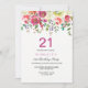Pink Peach Flowers 21st Birthday Party Invitation Gentle Hand Painted Watercolor Floral