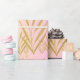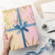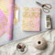 This wrapping paper features a playful tropical design with golden palm leaves spread across a soft pink and peach gradient background. The sparkling gold leaves stand out, adding a luxurious touch, while the scattered abstract gold brushstroke accents give the design a lively and energetic vibe. The warm pastel tones create a cheerful and breezy atmosphere, making it perfect for festive occasions, summer-themed gifts, or tropical celebrations. The combination of elegance and fun ensures this wrapping paper will make any gift feel special and vibrant.