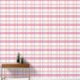 A modern plaid wallpaper, in pink, lilac, peach and off-white, creating a light yet warm and welcoming effect. The simple charm of this design makes it ideal for a pretty and rustic decorative style.