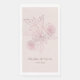 Pale whisper pink with deeper rose lettering and botanical line drawing. Forest florals combine in central bouquet. Classic typography for name and date.