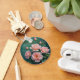 Pink Peonies Artwork on Emerald Green Key Ring