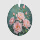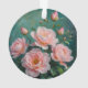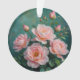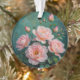 Pink Peonies Artwork on Emerald Green Ornament