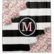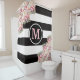 Pink Peonies Black and White Striped Monogram Shower Curtain