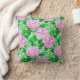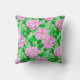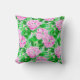 A pillow featuring a preppy pattern with pink peony flowers elegantly intertwined with greenery. The overall design exudes a fun, lively vibe that would brighten any space, making it a perfect decorative piece for a cosy living room, office, or bedroom. This pillow brings a preppy and colourful flair to home decor!