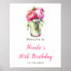 Pink Peonies Mason Jar Birthday Welcome Poster