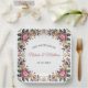 A sophisticated wedding invite features a lavish Rococo-style floral border, framing a central space for a personalised message and evoking a sense of vintage grandeur. The border is meticulously detailed with blush pink roses, cream lilies, and swirling golden scrolls, accented with shimmering gold leaf details and delicate pearl droplets, all set against a crisp, textured white complementing the overall aesthetic while providing ample interior space for a heartfelt message and creating a timeless keepsake.
