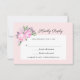 This stylish wedding RSVP card features watercolor painted pink peonies accented with green leaves and dark purple budding flowers. The background is white and bordered with light pink. The backside is dark purple.