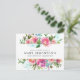 Such pretty pink peonies. They create an upper and lower border for the announcement of a 100th birthday party celebration. Three lines of text let you customise your greeting on the front of the birthday invitation postcard. The birthday party details are on the back. The peonies have dark pink centres and soft pink outer petals. The modern botanical design includes deep olive leaves and turquoise blue vine outlines. All text can be edited.
