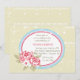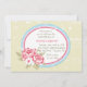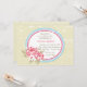 A quaint, oval decal with pink, blue and raspberry trim and a peony cluster corner makes a lovely invitation for a woman's celebration.
