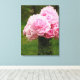 Peonies sit in tall glass vase, beautifully pink & fluffy. Totally customisable for you to personalise as you please!