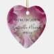 Celebrate your first Christmas as a newly engaged couple and commemorate the special day with the beautiful Pink Peony Flower Engagement Heart Shaped Ornament. Customise it with the personal names of the bride and groom and date he popped the question. This elegant custom flowery we're engaged ornament features a digitally painted close up macro floral photograph of a pink peony flower blossom on both sides.