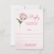 These wedding reply cards feature a pink peony flower. The back of the cards have a pattern and a peony flower. You can change the font colour and style by clicking he "Customise" button. There is a good range of paper and trim options to choose from. These peony wedding reply cards are part of a collection which includes a full range of matching wedding stationery such as wedding invitations, information cards, address labels, stickers, postage stamps, envelopes, favour boxes, wishing well cards, programs, menus and much more. Visit the collection page in our store to see the full range.