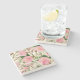 Pink Peony Flowers, Leaves & Buds Pattern Stone Coaster