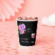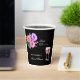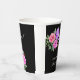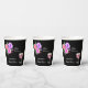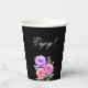 Personalise this Petals and Prosecco Bridal Shower paper cup, designed to add a touch of elegance to your special event. This exquisite cup features a stunning array of pink, lilac, and peach peony watercolor flowers beautifully contrasted with a chic black background, creating a sophisticated and stylish look. Each cup depicts sparkling pink prosecco in elegant champagne flutes, perfectly complementing the celebratory theme. Ideal for an elegant, bright floral bridal shower party, these paper cups are not only functional but also serve as a charming decor element that enhances the overall ambiance of your Petals and Prosecco Bridal Shower.