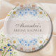 Pink Peony White Blue Hydrangea Bridal Shower Paper Plate