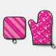 Pink Peppermint Snowflakes Candy Cane Stripe Name Oven Mitt & Pot Holder Set