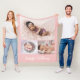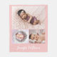 Pink Personalised Baby Girl Name & 3 Photo collage Fleece Blanket