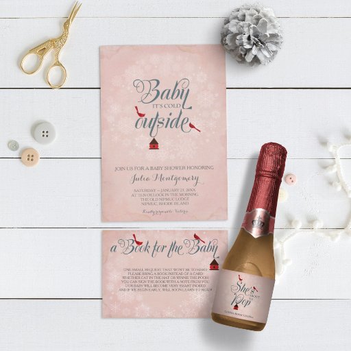 Send a touch of charm this holiday season with these personalised Christmas cards non photo! This unique vintage pink design features the phrase "Baby It's Cold Outside" beautifully written in elegant calligraphy script, surrounded by delicate white winter snowflakes, cheerful red cardinals, and a rustic birdhouse. Perfect for adding a country chic vibe to your holiday greetings, these cards are a standout choice for friends and family. Explore more Christmas 2024 designs at www.zazzle.com/vginvites.
