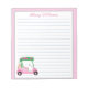 A charming unique golf cart -- pink and green -- tastefully done -- ready to run the course -- the notepad. This is a great gift for all golf lovers -- fun / attractive / unique. Personalise it with your/her name. If you have any design questions or a special request, please send a chat or an email to: charmdesignstudio@rcn.com and we'll be delighted to assist. Also comes in an unlined version.