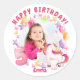 Pink Personalised Unicorn 5th Birthday Girl Classic Round Sticker