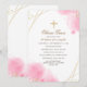 This invitation features pink, watercolor flowers with gold speckles and gold crisscross lines. The cross can be dragged to any location, made larger or smaller or eliminated making this a versatile invitation. (<a href="https://www.freepik.com/free-photos-vectors/frame">Frame vector created by pikisuperstar - www.freepik.com</a>). <br/><br/>The card is easy to customise with your wording, font and font colour.<br/><br/>Not exactly what you're looking for? All our products can be custom designed to meet your needs at no extra charge.<br/><br/>Simply contact us at askcottonlamb@gmail.com.<br/><br/>Coordinating products available: Just ask us!