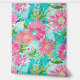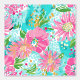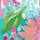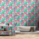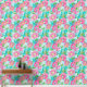 A seamless preppy pattern featuring pink flowers on a minty green background with small orange dots. The design has a hand-painted look, combining charming floral elements with playful dots to create a fresh and stylish effect