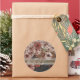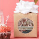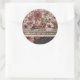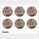 Bride and Groom Pink Petunia On Damask Stickers With Brown Laced Linen